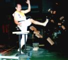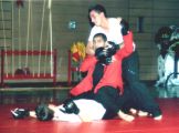 Das FZ Münsingen unter der Leitung von Peter Hornung organisierte am 24.11.01 die Budogeneration 2001. Die Veranstaltung war ein voller Erfolg, ca. 600 Zuschauer waren anwesend. Natürlich unterstützte die I.C.B.O. auch die Budogeneration 2001 und entsandte Sigung Dr. Min Tah Jao und Sifu Nihat Atamtürk, die auch eine Chinese Boxing und Kung Fu Demonstration vorführen sollten. Auf der Budogeneration 2001 wurde die gesamte Palette des Budo-Sports vorgeführt. So zum Beispiel Dr. Lee von Hannover, der einen Kopf-Bruchtest vorführte und von Frechen Frank Aust, der das brasilianische Kampfsystem, Luta Livre demonstrierte. Ausserdem waren noch viele Kampfkunst-Meister anwesend die ihre Kampfkünste gekonnt vorführten. Die Zuschauer bekamen einen Einblick in Kung Fu, Karate, Thaiboxen, Jiu Jitsu, Wrestling, Kobudo, Taekwondo, Judo, Shidokan, Wu Shu. Sifu Nihat Atamtürk demonstrierte eine realistische Chinese Boxing Kampfdemonstration gegen Marco Linden und Murat Cinar. Die beiden griffen Sifu Nihat Atamtürk mit den verschiedensten Angriffen an und er konterte mit knallharten Abwehrtechniken des Chinese Boxing. Die Angreifer hatten keine Chance, sie gingen mehrmals zu Boden. Danach demonstrierte Daniel Jao seine akrobatische und traditionelle Kung Fu Form Drunken-Master. Zum Abschluss präsentierte Grossmeister Sigung Dr. Min Tah Jao seine weltbekannte Bruchtest-Show. Er begann seine Show zunächst einmal mit der Vorführung einer Tai Chi Chuen Form an. Danach kam er zu seinem aussergewöhnlichen Bruchtest. Sigung zertrat und zerschlug mehrere Steinplatten, Dachpfannen und Ziegel. Danach zertrat Sigung Dr. Jao mit seinem blossen Schienbein 4 nebeneinander hochgestellte Ziegelsteine. Das Demo-Team der I.C.B.O. erhielt zum Abschluss ihrer Show einen tosenden Applaus. Abschliessend wollen wir dem FZ Münsingen für die tolle Veranstaltung gratulieren. Die ganze Organisation und der Ablauf waren bis ins letzte gut geplant worden. Sicherlich wird die I.C.B.O. solche Veranstaltungen immer wieder gerne unterstützen.