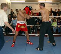 Im Kick Boxen lieferten sich Caglar Kocak (Warriors Herrenberg) und Mustafa Dari (Chinese Boxing Köln) einen spannenden Kampf. Kocak arbeitete mit geraden Fäusten. Dari konnte ausweichen und konterte mit harten Faust- und Lowkicks, die Kocak durchschüttelten. Kocak zeigte einen enormen Kampwillen. Bis zur 3 Runde konnte er den harten Schlägen von Dari Stand halten. Dari kam in Runde 3 mit einem harten Kopfhaken zum Kopf von Kocak durch, der ihn zu Boden schickte. Nach dem Anzählen setzte Kocak den Kampf fort und ging nach einer harten Serie von Dari erneut zu Boden. K.o. Sieger in Runde 3 Mustafa Dari.
