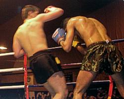 In einem auf 5 Runden á 2 Minuten angesetzten Kick Box Kampf trafen Gökhan Kaya (Solingen) und Nabil Tahar (Team Pavone) aufeinander. Kaya startete in Runde 1 mit harten Lowkicks. Tahar arbeitete mit seinen Fäusten dagegen. In Runde 2 war Tahar´s Oberschenkel von den vielen Lowkicks angeschwollen. Als Kaya einen weiteren Lowkick Angriff starten wollte, kam Tahar mit einer wuchtigen rechten durch, die Kaya zu Boden schickte. Kaya musste ausgezählt werden. K.o. Sieger in Runde 2 Nabil Tahar.