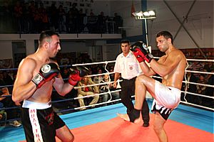 Im Boxen traf Ali Riza Büyük (Chinese Boxing Akademie) auf Hemsa Akkruch (Inter-Monheim). Büyük startete mit geraden Fäusten. Akkruch war im Oberkörper sehr beweglich und pendelte die meisten Schläge aus und antwortete mit schweren Haken, mit denen er Büyük hart traf. Büyük traf in der ersten Runde seinen Gegner selten, da dieser immer die Schäge auspendelte. Büyük zeigte erstaunlich Nehmerqualitäten, so wurde er einige male von schweren Haken getroffen. In der 2. Runde ließen es beide Kämpfer zunächst ruhiger angehen. Büyük arbeitete mit seinen Fäusten aus der Distanz und Akkruch suchte den Infight, jedoch hatten seine Angriffe nicht mehr die Power aus der 1. Runde. Büyük konnte sich besser einstellen und kam mit seinen Fäusten durch. Akkruch blieb aber brandgefährlich, er konterte mit Haken. In der 3. Runde hatte Büyük die besseren Treffer am Ziel. Akkruch, der besonders in der 1. Runde viel gearbeitet hatte, konnte nicht mehr so einfach die Distanz überbrücken. Büyük konnte schwere Fäusten landen, wurde aber immer wieder, wenn er nicht aufpasste, getroffen. Der Kampf wurde bis zum Ende verbissen weiter geführt und endete mit einem Unetschiden.