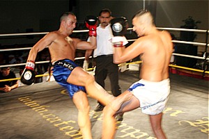 Im Kick Boxen trafen über 4 x 2 Minuten Murat Densiz (Chinese Boxing Akademie) und Adrian Sobek (Hara Chi Do Köln) aufeinander. Dieser Kampf war gleichzeitig auch ein Revanche Kampf. Im letzten Jahr standen sich die beiden schon mal gegenüber und Densiz sicherte sich damals einen Punktesieg. Dementsprechend war Sobek motviert die Niederlage von damals wieder gutzumachen. Als der Kampfrichter den Kampf frei gab, griff Sobek mit Kicks an und setzt auf weitere Kicks. Densiz arbeitete mit einer kompakten Deckung und antwortete mit wuchtigen Fäusten. Sobek musste schon in Runde 1 harte Schläge wegstecken und wurde dabei einige male durch die Wucht der Schläge von den Beinen geholt. Auch die weiteren Runden verliefen ähnlich. Sobek arbeitet mit starken Kicks und Densiz suchte den entscheidenden Schlag. Da beide sich gut kannten, lies keiner den anderen richtig zum Zuge kommen. Obwohl Densiz nicht wie gewünscht Kombinationen schlagen konnte, hatte er immer ein paar Fäuste drin und beendete den Kampf nach 4 Runden als Punktesieger.