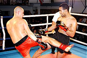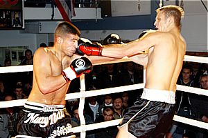 K-1 Rules / Stephan Kind vs. Ersan Koc Kind brachte aus der Distanz Fäuste und Kicks. Koc´s Deckung stand und er schlug mit seinen Fäusten zurück. Nach und nach bestimmte Koc den Kampf. Kind hielt mit seinen Aktionen dagegen, doch Koc blieb seiner Linie Treu und mit einer schweren Faustserie schickte er seinen Gegner zu Boden. Kind versuchte es in der 2. Runde mit schnellen Serien, doch Koc kam mit einer schweren Rechten durch und die zeigte direkt Wirkung. Kind war angeschlagen und aus seiner Ecke kam das Handtuch. Sieger durch Aufgabe in Runde 2. Ersan Koc.