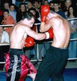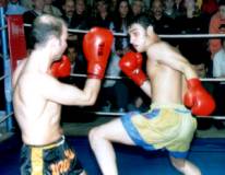 Den ersten Superkampf in der B-Klasse im Kick Boxen boten sich Waldemar Esterlein (Kampfsportcenter Erwitte) gegen Murat Üstübolaer (BSU Wuppertal) über 5 x 2 Runden. Waldemar Esterlein fing die erste und zweite Runde sehr gut an, er konnte seinen Gegner Murat auf Distanz halten und brachte saubere Faust- und Fusstechniken ans Ziel. Murat Üstübolaer hingegen fand ab der 3. Runde zu seinem Kampf und konnte Waldemar mehrmals mit Lowkicks von den Beinen holen und des öfteren kam Murat auch noch mit geraden Fäusten durch. Bis zur 5. Runde war diese Kampfbegegnung wohl der aktivste Kampf des Abends, denn keiner der beiden Kämpfer lies locker. Beide arbeiteten in jeder Runde, was zu einem enormen Temporeichen Kampf führte. In der Mitte der 5. Runde bekam Waldemar Esterlein, der bis dahin gleichwertig mitgefightet hatte erstmals konditionelle Probleme und konnte das Tempo nicht mehr halten und kassierte prompt von Murat Wirkungstreffer, woraufhin er im Stehen angezählt werden musste. Nach dem Ende der 5. Runde ging Murat Üstübolaer mit einem leichten Punktevorsprung als Sieger aus dieser Kampfbegegnung hervor.