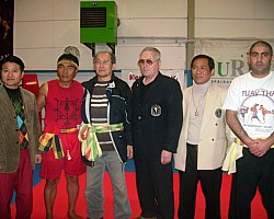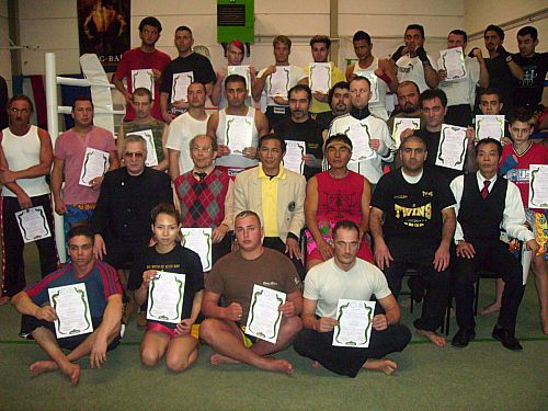 MUAY THAI / MUAY BORAN SEMINAR Am 21.+22.02.207 richtete die Chinese Boxing Akademie Köln in Zusammenarbeit mit der AITMA (Association Institute of Thai Martial Arts) und der ICBO (International Chinese Boxing Organization) ein Muay Thai / Muay Boran Seminar aus. Lehrgangsleiter waren Grandmaster Channarong Suhonhsa (AITMA president & director by Nakonnayok Provincial, Ministry of Tourism and Sports) und Grandmaster Phosawat Saensawang (Professor by Rajabhat Mahasarakham University). 30 Teilnemer folgten der Einladung, darunter auch die Trainer Halil Gülseren (Herrenberg), Rainer König (Boxclub Wipperfürth), Yusuf Aksu (Kong Sao Kerpen). 2 Tage lang wurden Die Seminarteilnehmer in die traditionellen Künste des Muay Thai / Boran eingeweiht. Die Meister aus Thailand gingen auf jeden Teilnehmer persönlich ein und verbesserten die Techniken und beantworteten viele Fragen. Mit ihrer bescheidenen Art und fachlichem Wissen, konnten sie jeden Teilnehmer schnell begeistern. Unterstützt wurde das Seminar auch von Großmeister Sigung Dr. Min Tah Jao, Großmeister Yeo, Arjarn Branco Grimsic und Sifu Nihat Atamtürk. Auf dem Seminar wurde auch eine engere Zusammenarbeit mit Arjran Branco Grimsic vereinbart. Künftig werden auch auf ICBO Galas WBC Muay Thai Titelkämpfe ausgetragen werden. Gegen 22.00 Uhr beendeten die Meister das Seminar mit der Übergabe der Seminar-Urkunden.